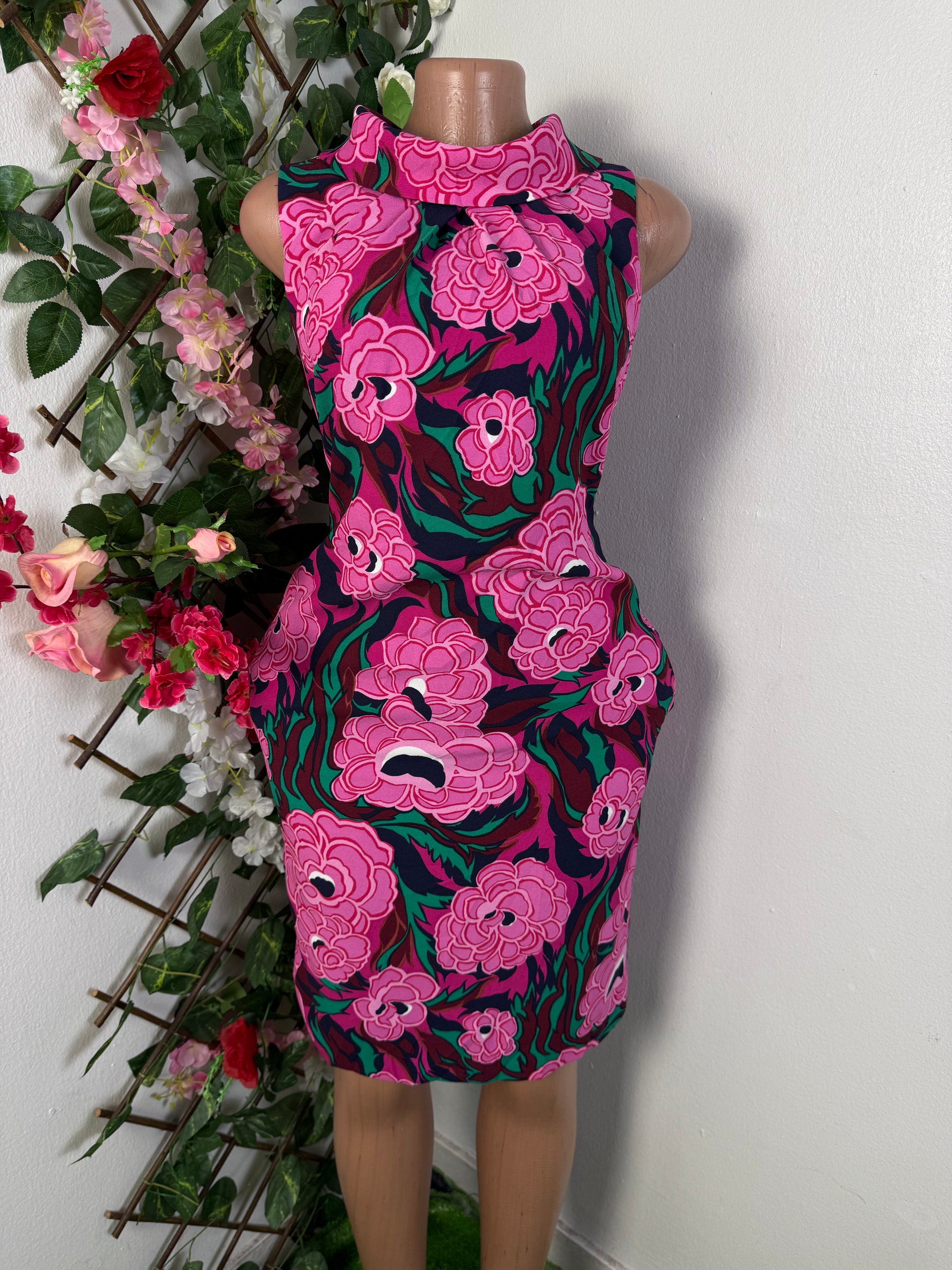 Robe fleurie elegante a colle montant