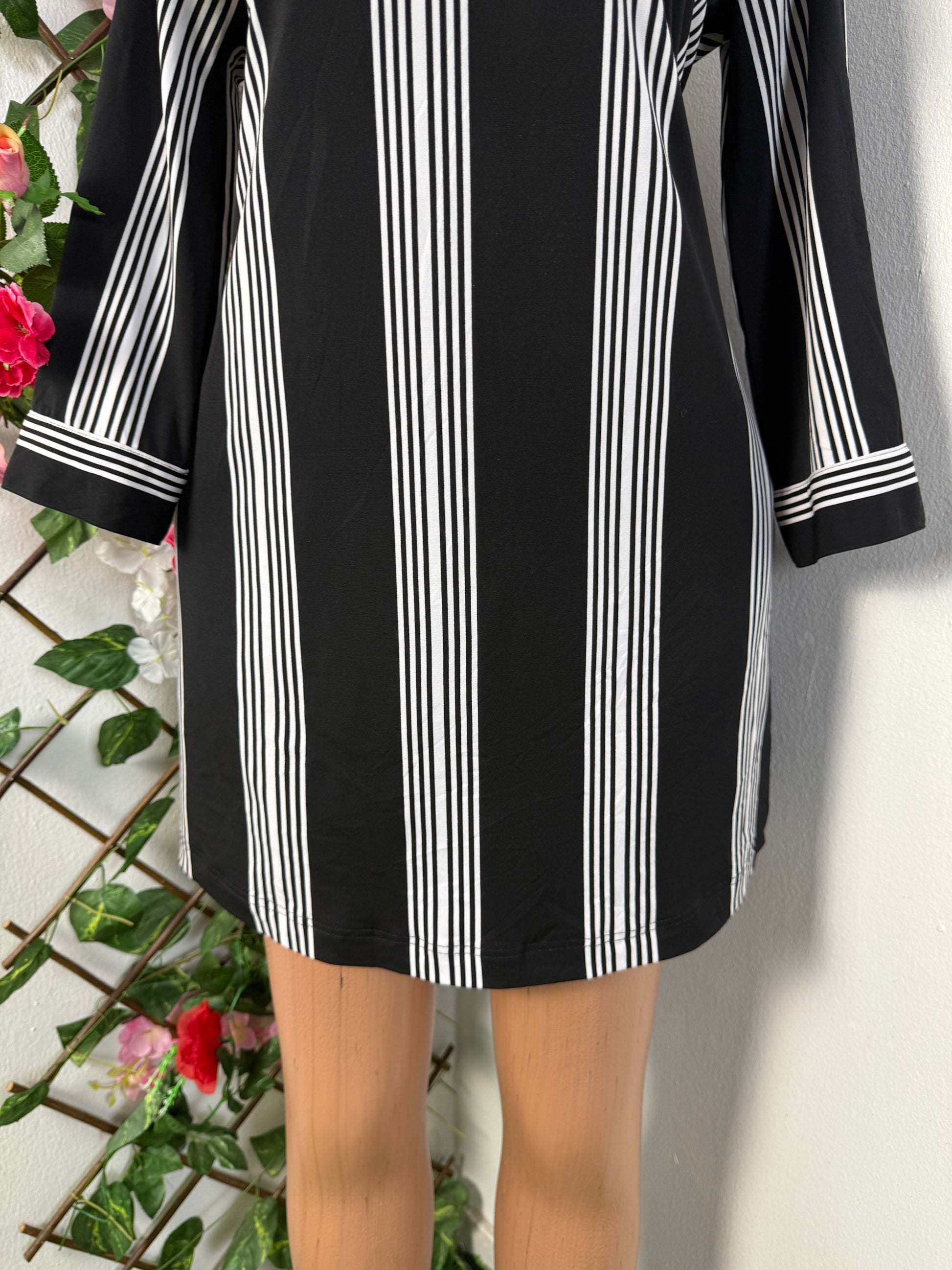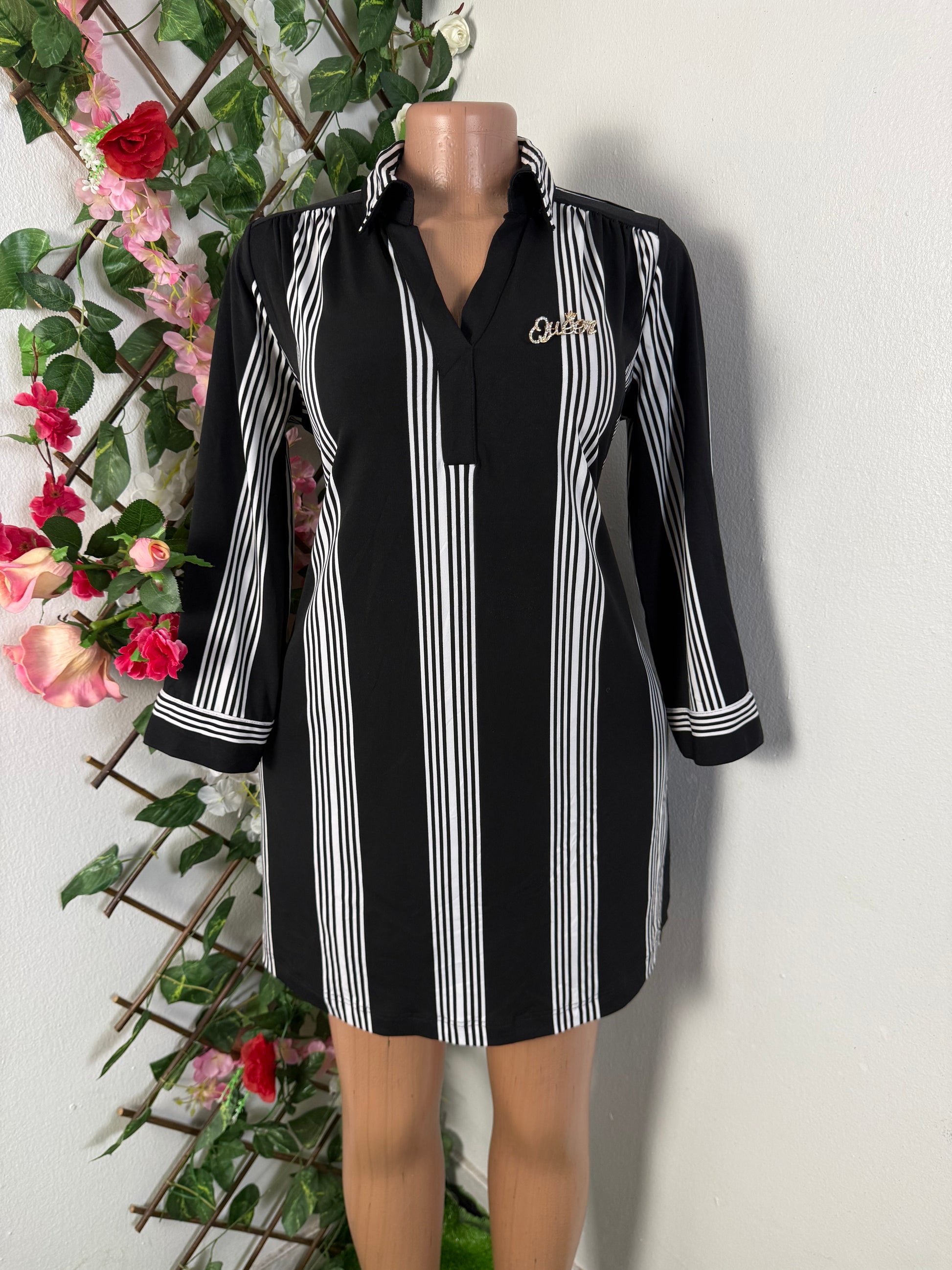 Cette robe chemise à rayures allie élégance et confort avec ses manches longues et sa poche pratique. Parfaite pour un look à la fois décontracté et soigné, elle s’adapte à toutes les occasions tout en mettant en valeur votre silhouette. Un choix idéal pour renouveler votre garde-robe avec style.