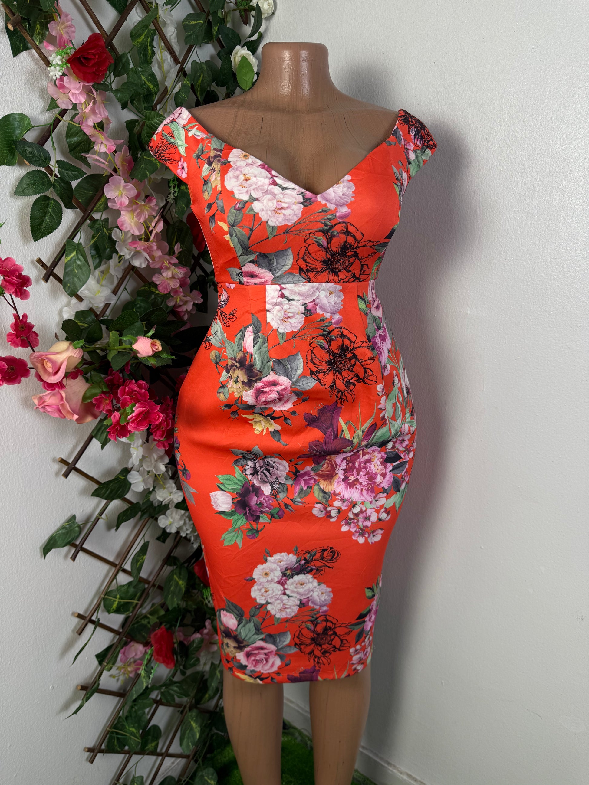 Cette robe moulante fleurie au décolleté bateau sublime votre silhouette avec élégance. Sa coupe ajustée met en valeur vos courbes tandis que le motif floral apporte une touche de fraîcheur et de féminité. Parfaite pour une soirée ou un événement spécial, elle allie charme et raffinement pour vous faire sentir confiante et irrésistible.