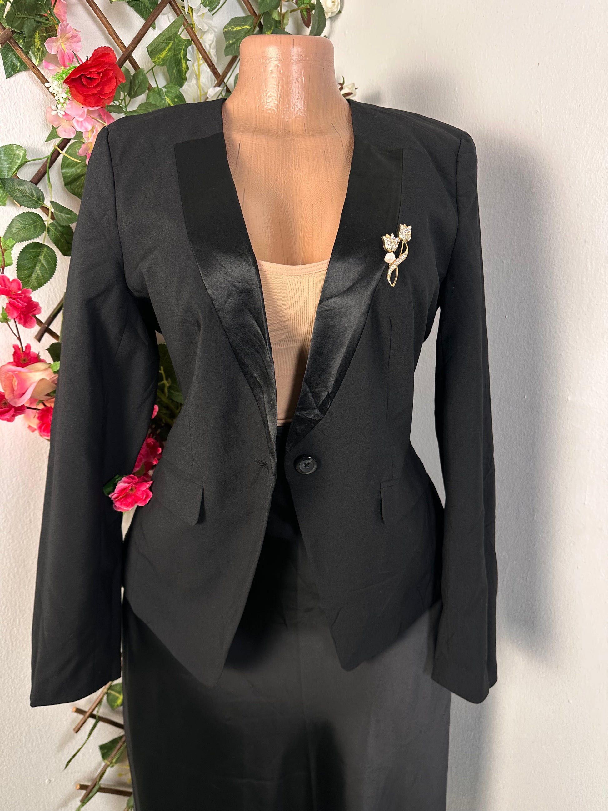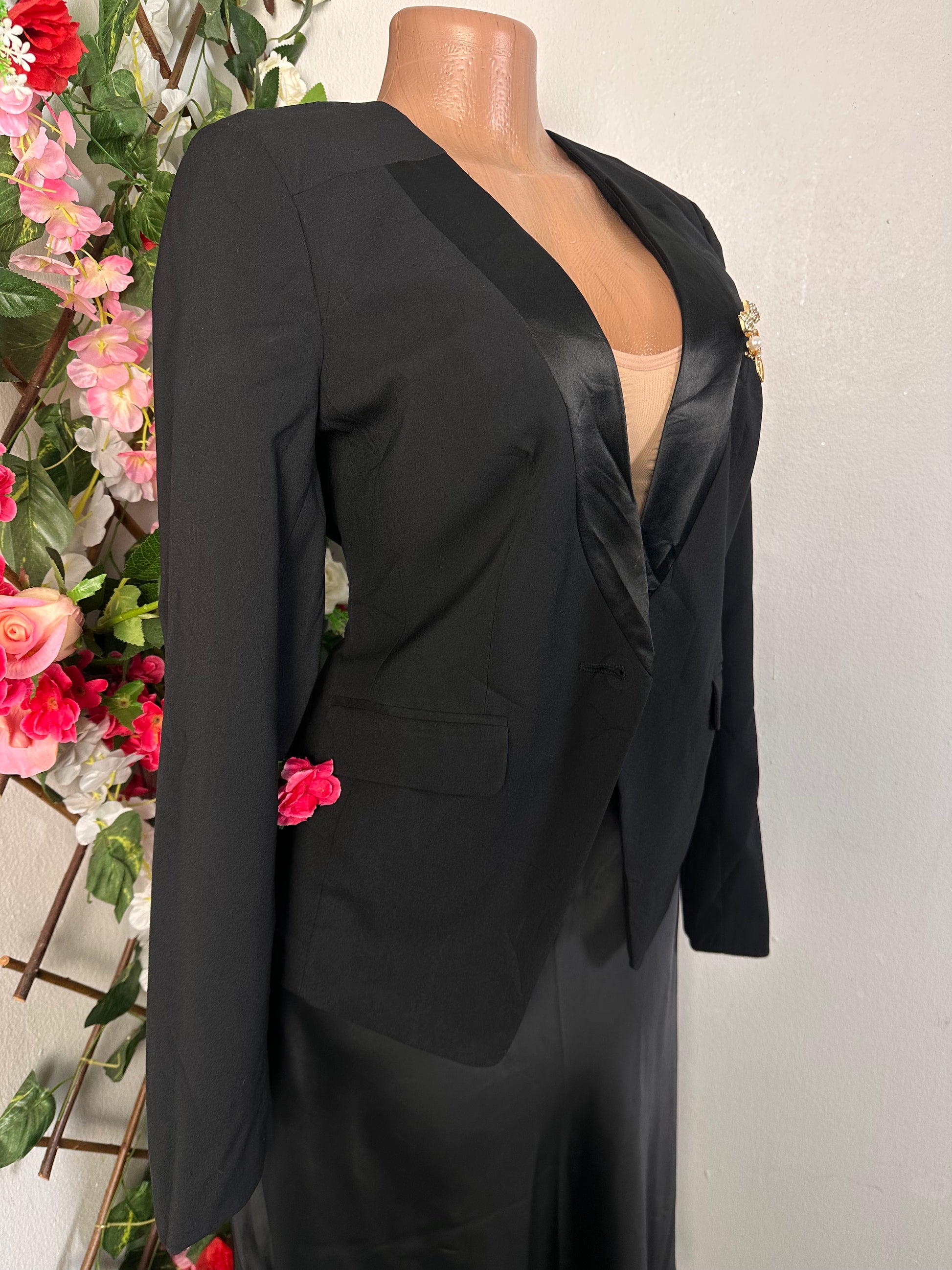 Adoptez un look chic et audacieux avec cette veste blazer noire pour femme, à col smoking élégant. Parfaite pour ajouter une touche sophistiquée et moderne à vos tenues, elle combine style et confort pour vous accompagner du bureau à vos soirées. Osez la distinction avec cette pièce incontournable qui sublime votre silhouette avec une allure pleine de caractère.